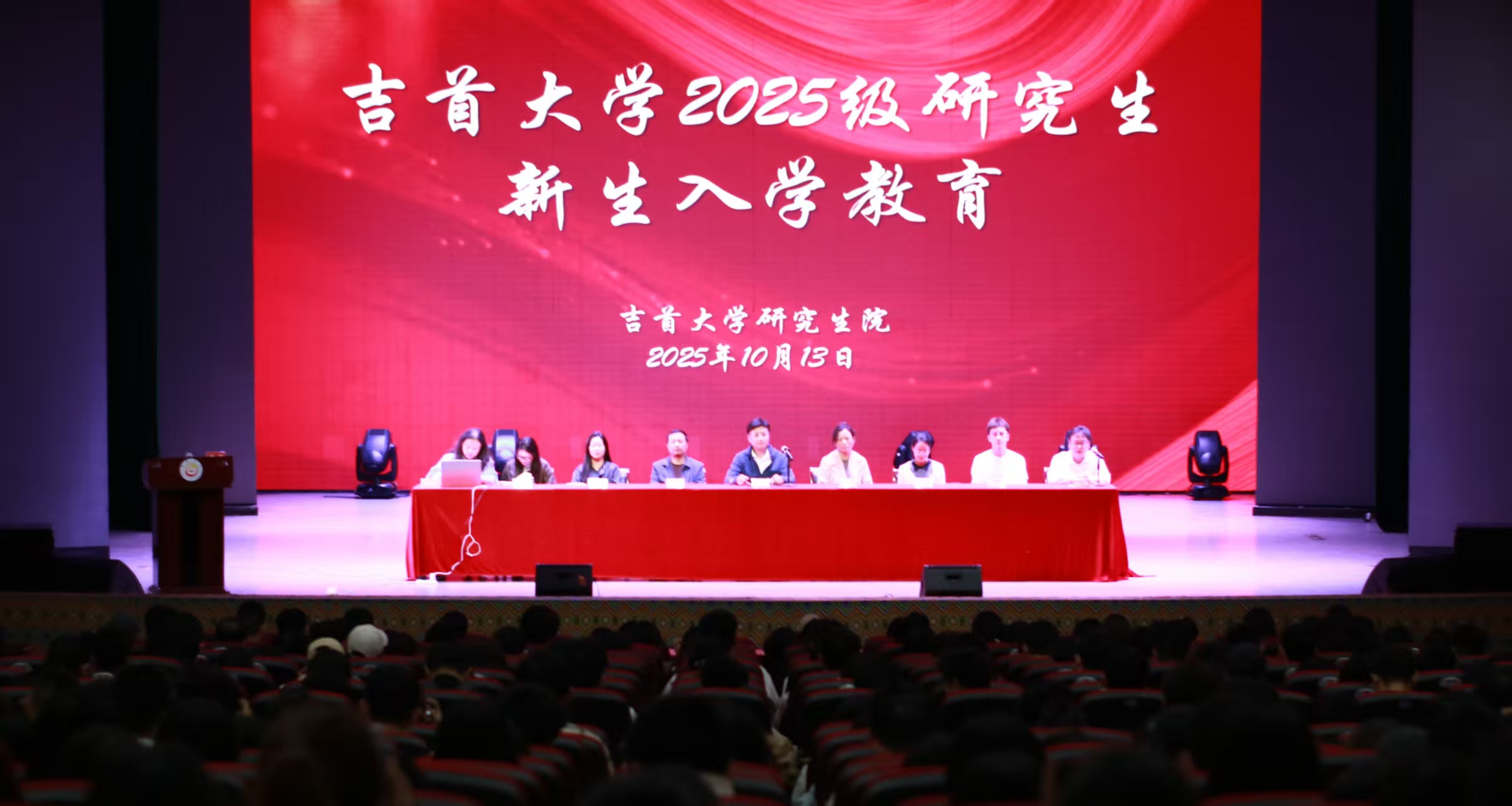 为深入落实立德树人根本任务,全面提升研究生教育质量,助力2025级新入学研究生迅速融入校园、适应学术环境,伟德国际victor1946于10月13日在砂子坳校区实验剧场隆重举行2025级研究生入学教育。吉首校区全体2025级研究生悉数到场,活动由bv伟德国际1946教育管理科杨卓老师主持。